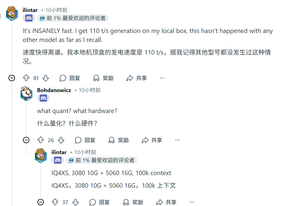 但总的来说,也是有不少网友点赞的,比如新模型在特定量化和硬件下的高吞吐性能,以及英伟达的开源精神。