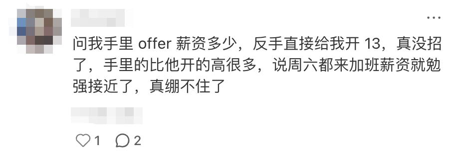 13 级基本就是白菜价,这也导致手头有多个 offer 的一些同学不是很能接受。