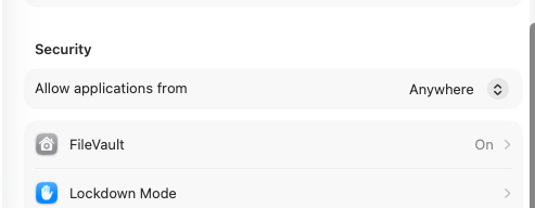 sudo spctl --master-disable # 设置隐私中,允许任何来源软件
