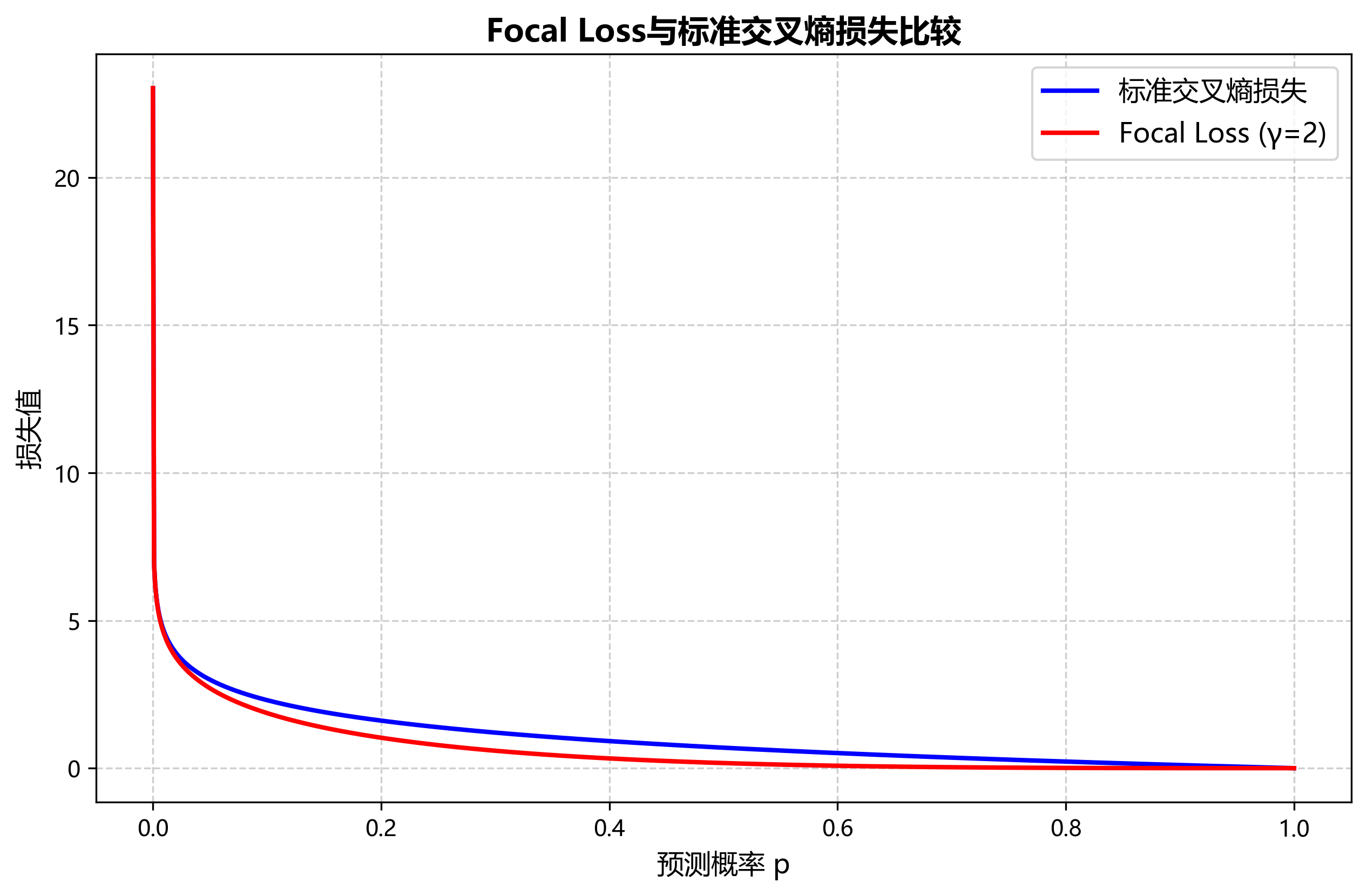 在医学图像智能检测领域,常见的挑战包括图像质量不稳定、目标形态变化大、样本不平衡等。RetinaNet模型通过引入Focal Loss解决了样本不平衡问题,其表达式为: