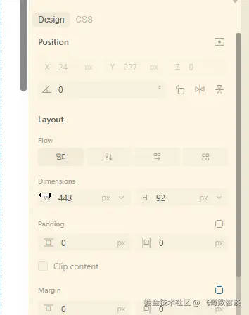 调整大小的使用不是很直观,需要将鼠标放到 Layout - Dimensions 下的 W 上,当鼠标变为双向箭头时,拖动即可调整。