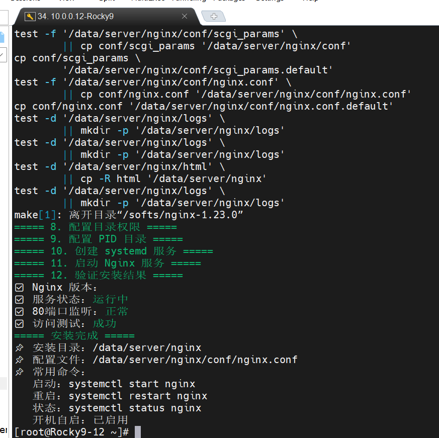 执行命令(Rocky):chmod +x nginx_install_rocky.sh