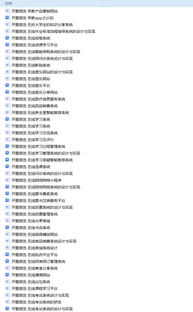 以上是H同学的毕业设计答辩过程,如果你现在还没有参加答辩,还是开题阶段,已经选好了题目不知道怎么写开题报告,可以下面找找有没有自己符合自己题目的开题报告内容,列表中的开题报告都是往届真实的开题报告可参考