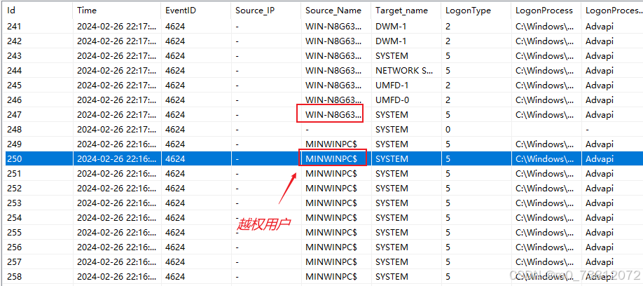 所以我们可以输入相应的ID来进行查询,在经过排查后,基本可以确定攻击者的攻击时间为从2024/2/26 22:16分开始: