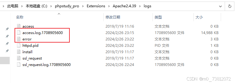 所以我们来到文件,发现phpstudy搭建的是Apache的服务,那我们直接查看他的access.log 和error.log即可: