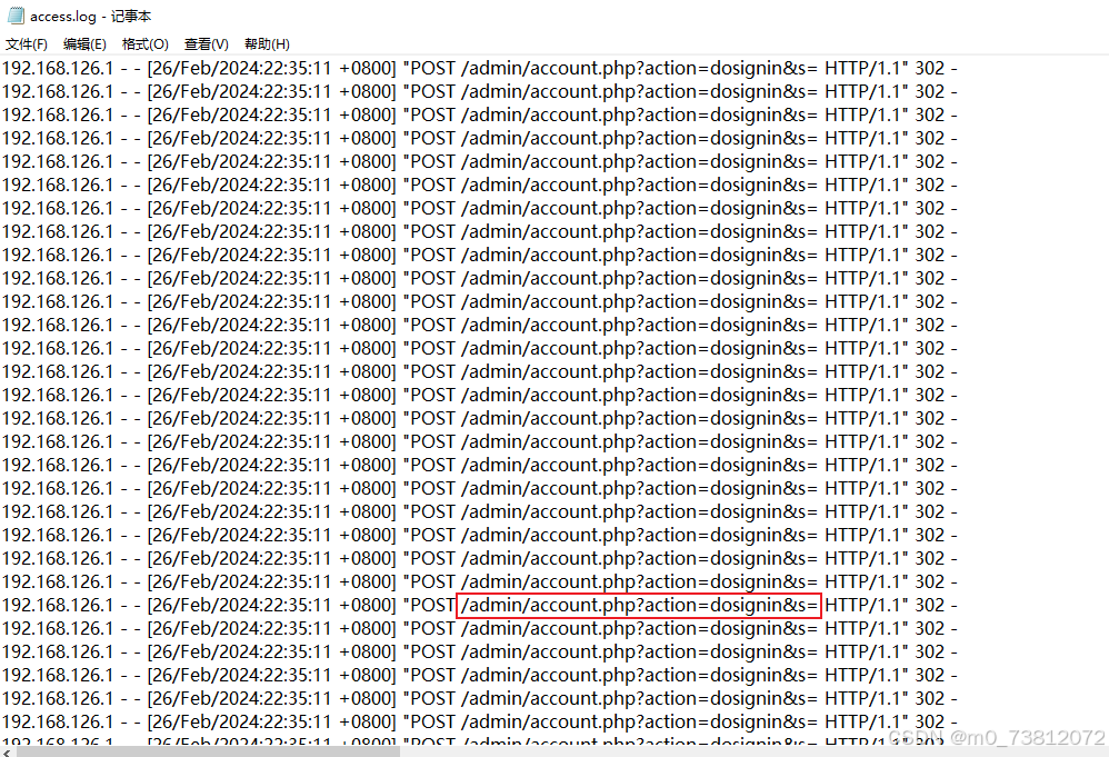 而往上翻,可以发现大量的account.php的使用(合理猜测是登陆的页面 ,被攻击者进行爆破攻击)