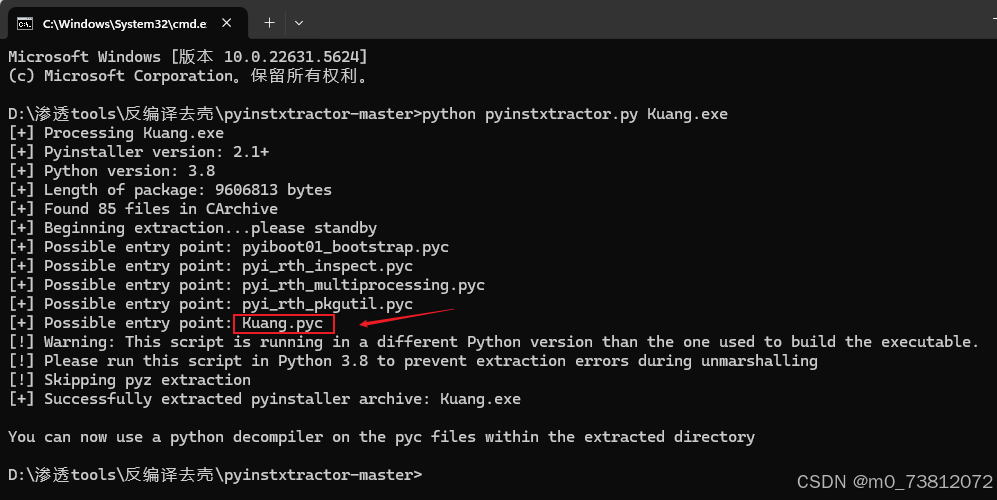 随后我我们使用工具pyinstxtractor对exe文件进行进行解包: