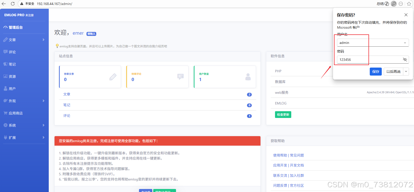 emlog v2.5.3版本存在文件上传漏洞,该漏洞源于admin/plugin.php插件组件对上传的文件缺少有效的验证。攻击者可利用该漏洞上传恶意文件从而远程执行任意代码。