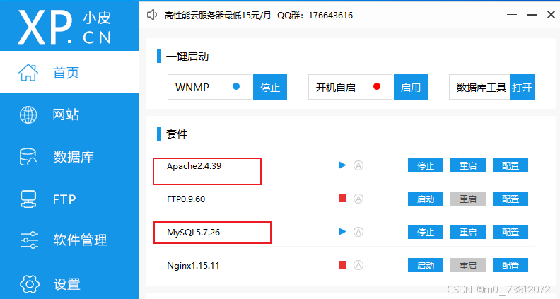 我们打开phpstudy的Apache和MySQL服务,然后到网站看看它搭建了一个什么服务: