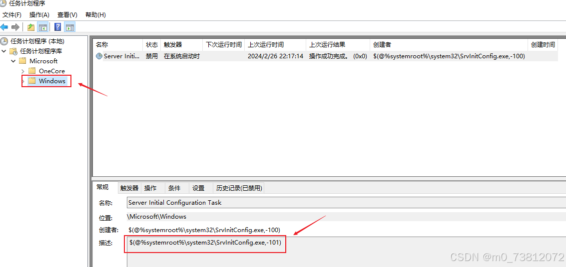 这里我们发现了一个计划任务$(@%systemroot%\system32\SrvInitConfig.exe,-101),看样子有点异常;