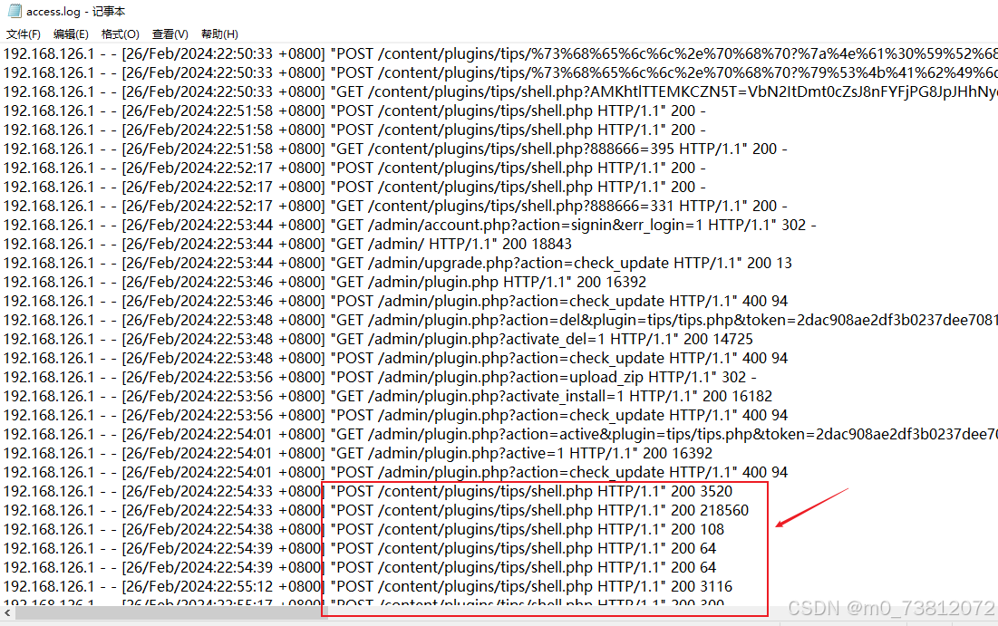 而这也为我们确定了攻击者攻击的大概时间:2024/2/26 23:01:13