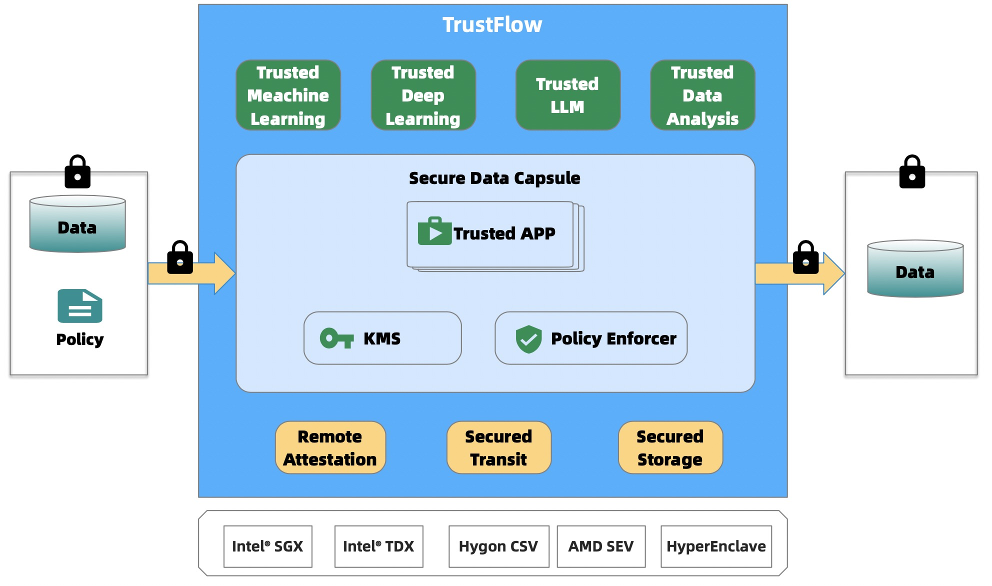 TrustFlow是一种基于可信执行环境 (TEE) 的零信任计算系统。TrustFlow 的名称来源于可信执行环境 (TEE) 和秘密流 (Secret Flow) 的融合。