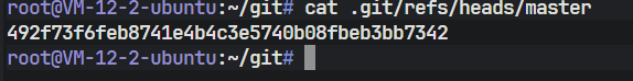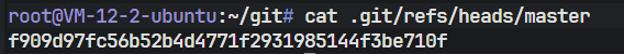 上图展示了查看 master 分支引用的结果。输出的一长串字符(SHA-1 哈希值)代表了当前 master 分支所指向的最新一次提交对象。这说明"分支"在 Git 中本质上仅仅是一个指向特定提交的游标(指针)。