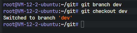 首先,创建一个新分支 dev 并切换过去。可以使用组合命令: