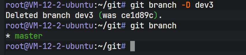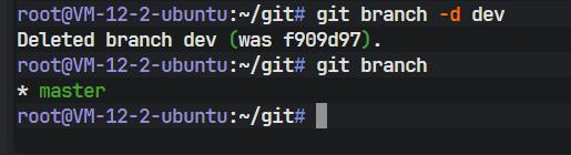 注意:Git 不允许删除当前所在的分支。因此必须处于非 dev 分支(如 master)上才能执行删除操作。
