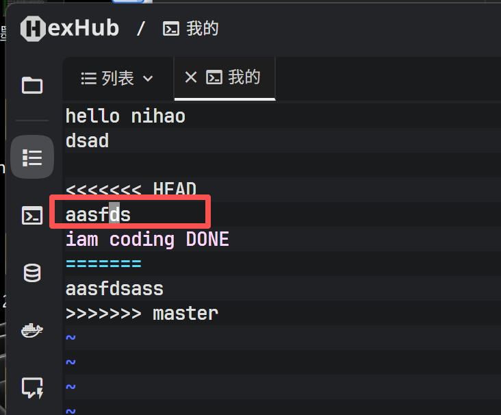 此时打开 README 文件,Git 已经将冲突内容以特殊标记显示出来: