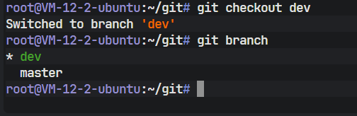 此命令等同于 git branch dev 加上 git checkout dev。