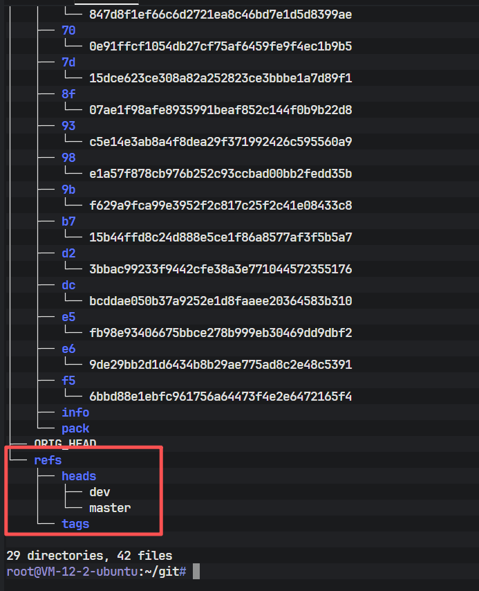 为了深入理解 git branch dev 到底做了什么,我们需要查看 .git 目录的树状结构。