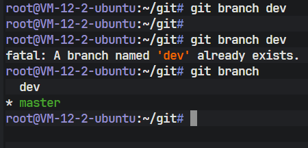 使用以下命令创建一个名为 dev 的新分支: