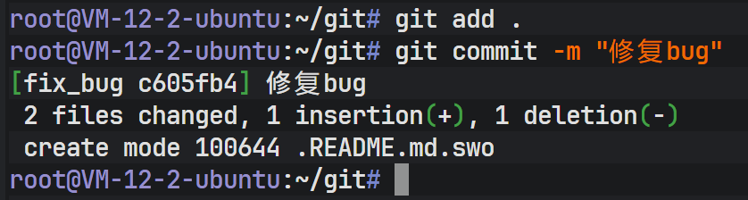 在 fix_bug 分支上进行代码修复并提交。