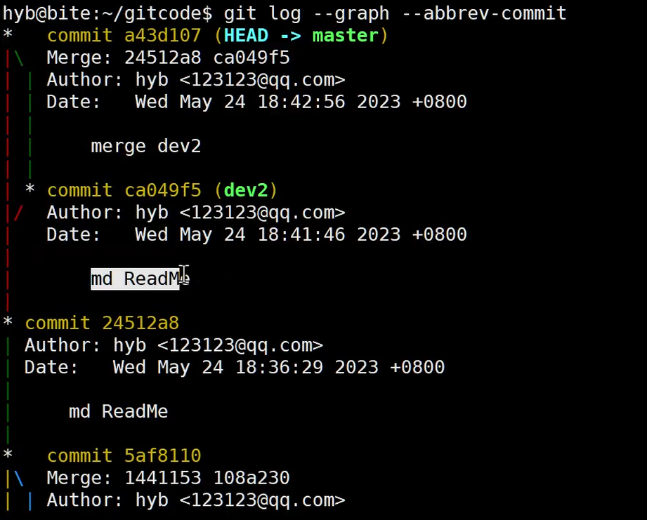 上图清晰地展示了历史记录的分叉与汇合过程。