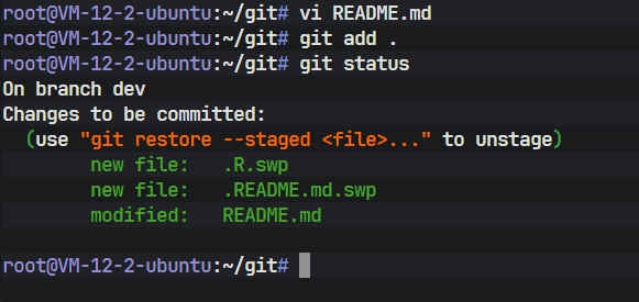 在 dev 分支环境下,对工作区的 README 文件进行修改,模拟开发过程。