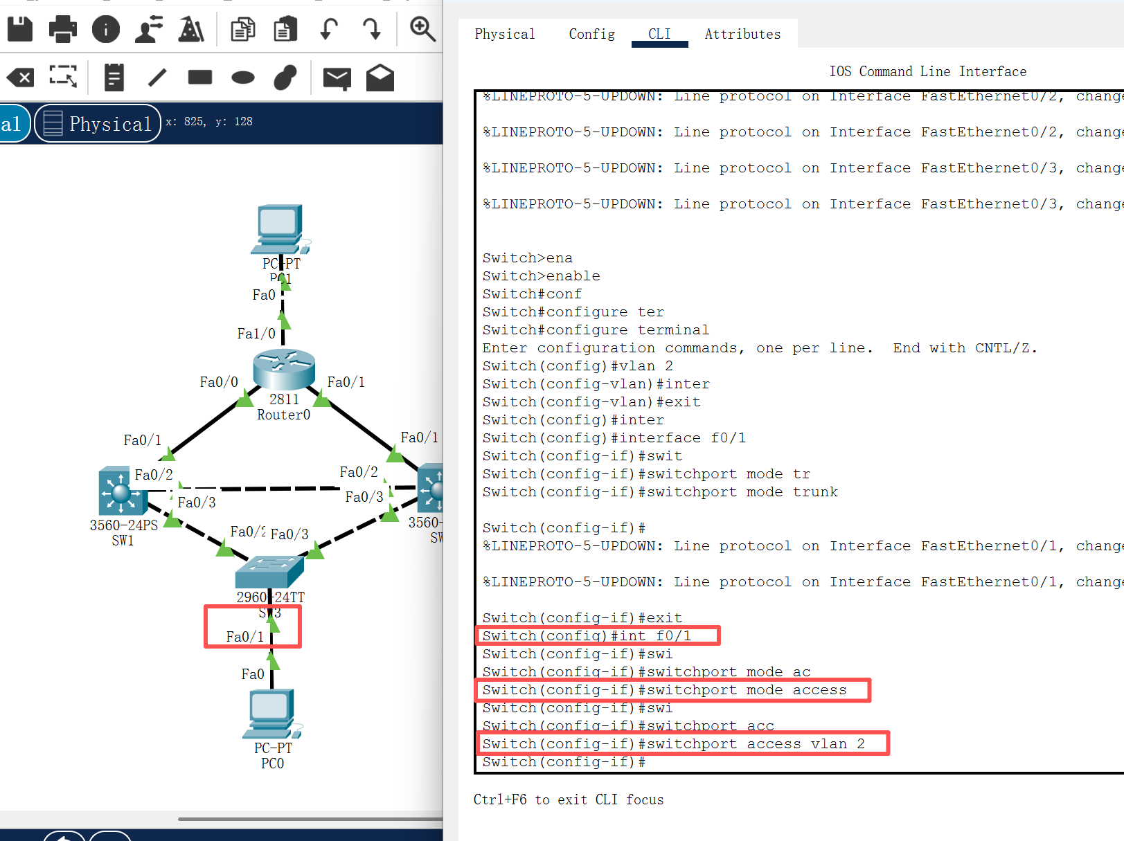 将SW3的f0/1接口改为access模式并连接vlan 2