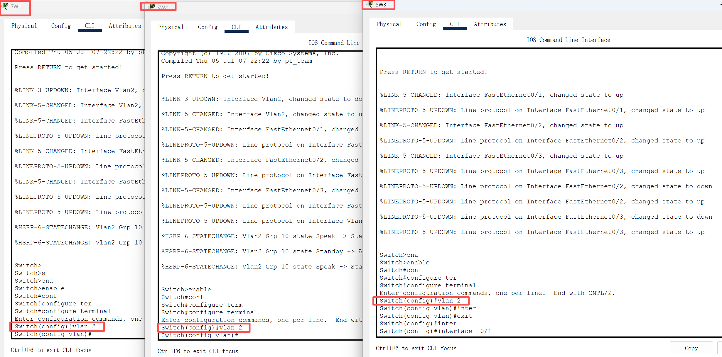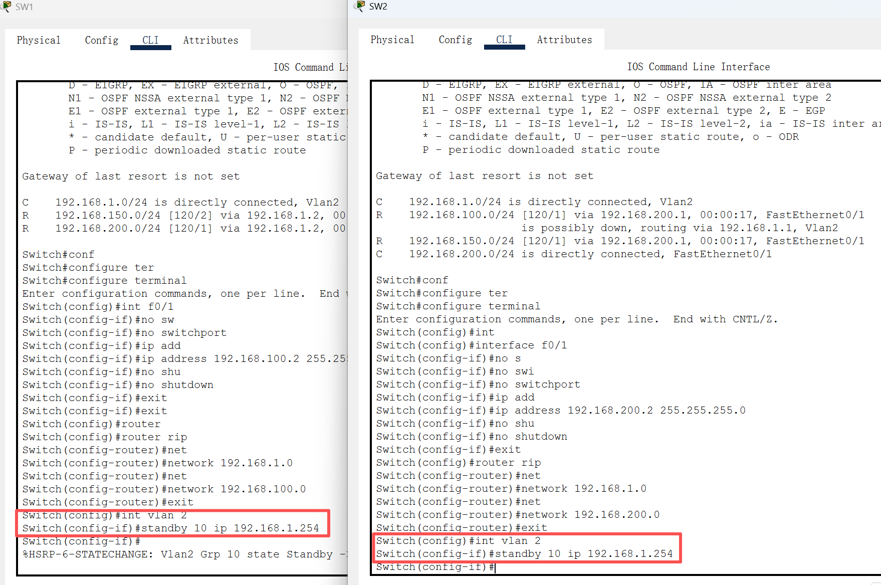SW1,SW2的VLAN2接口配置为HSRP成员,组号为10