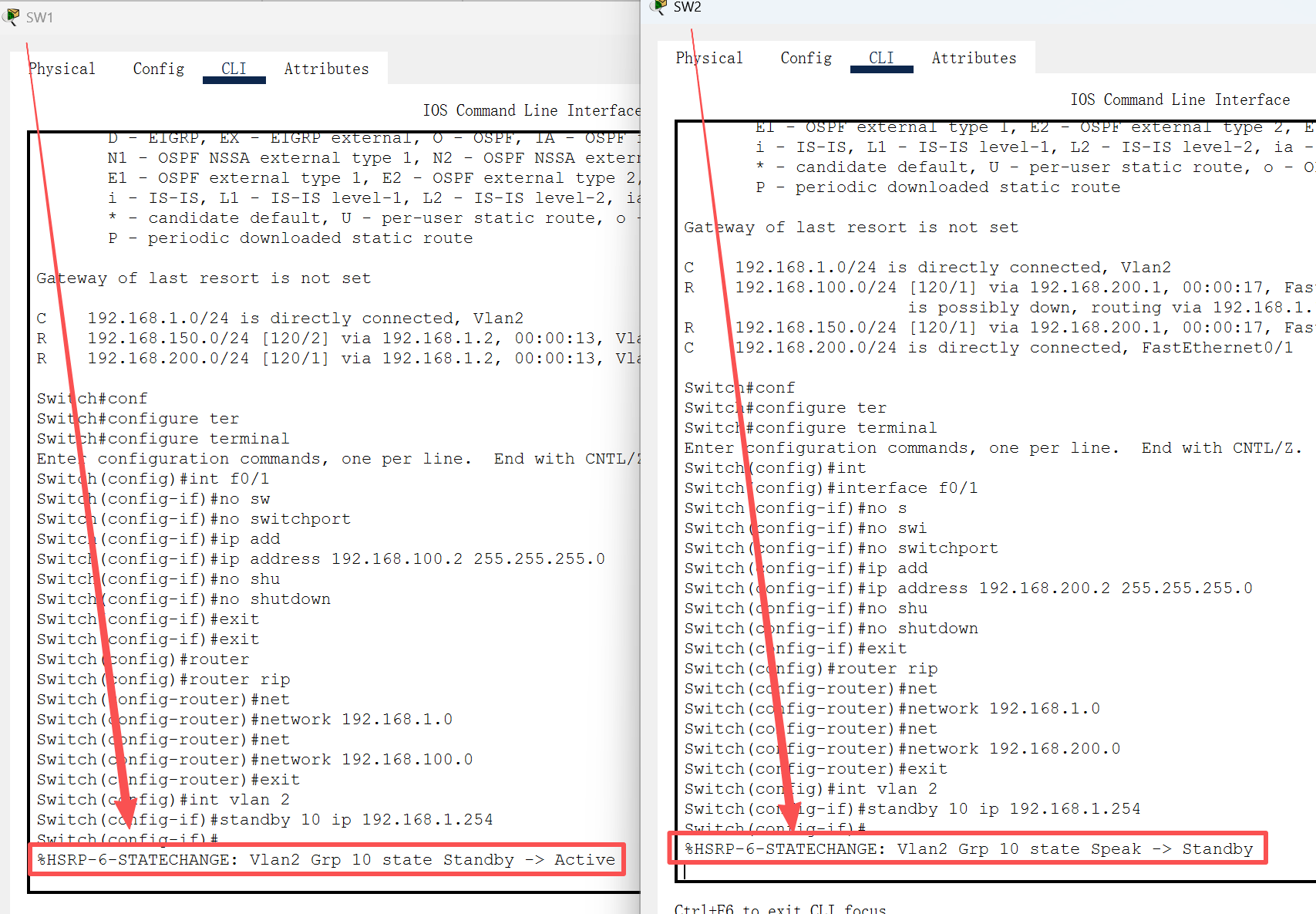 配置成功,SW1线路在出问题的时候,会自动激活SW2备用路线