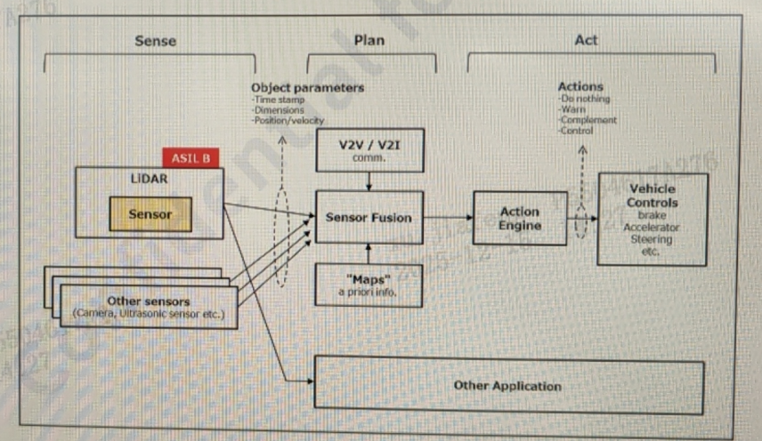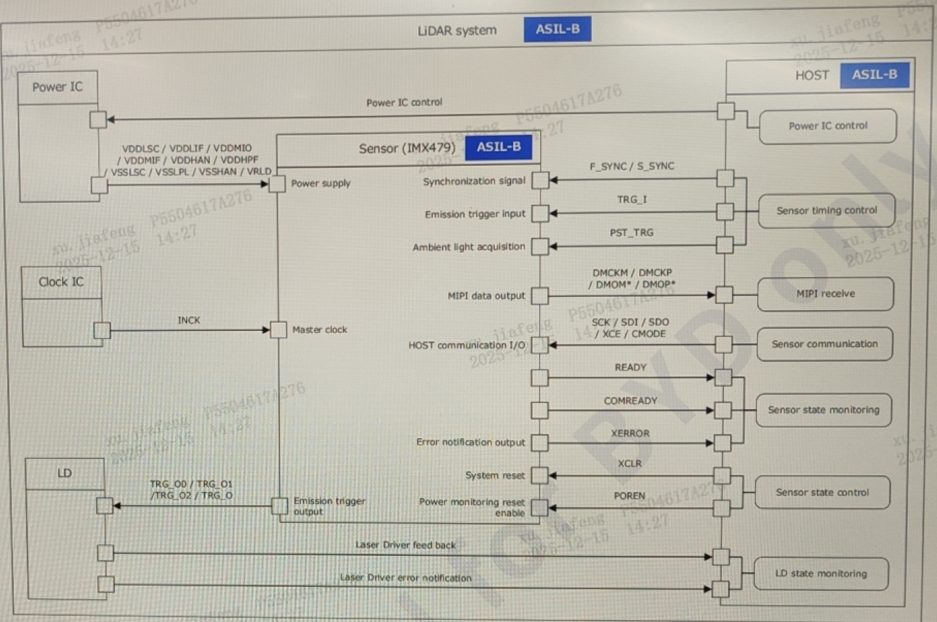 ①组件包括电源IC、时钟IC、LD、sensor、host,整个系统均满足ASIL-B功能安全等级。