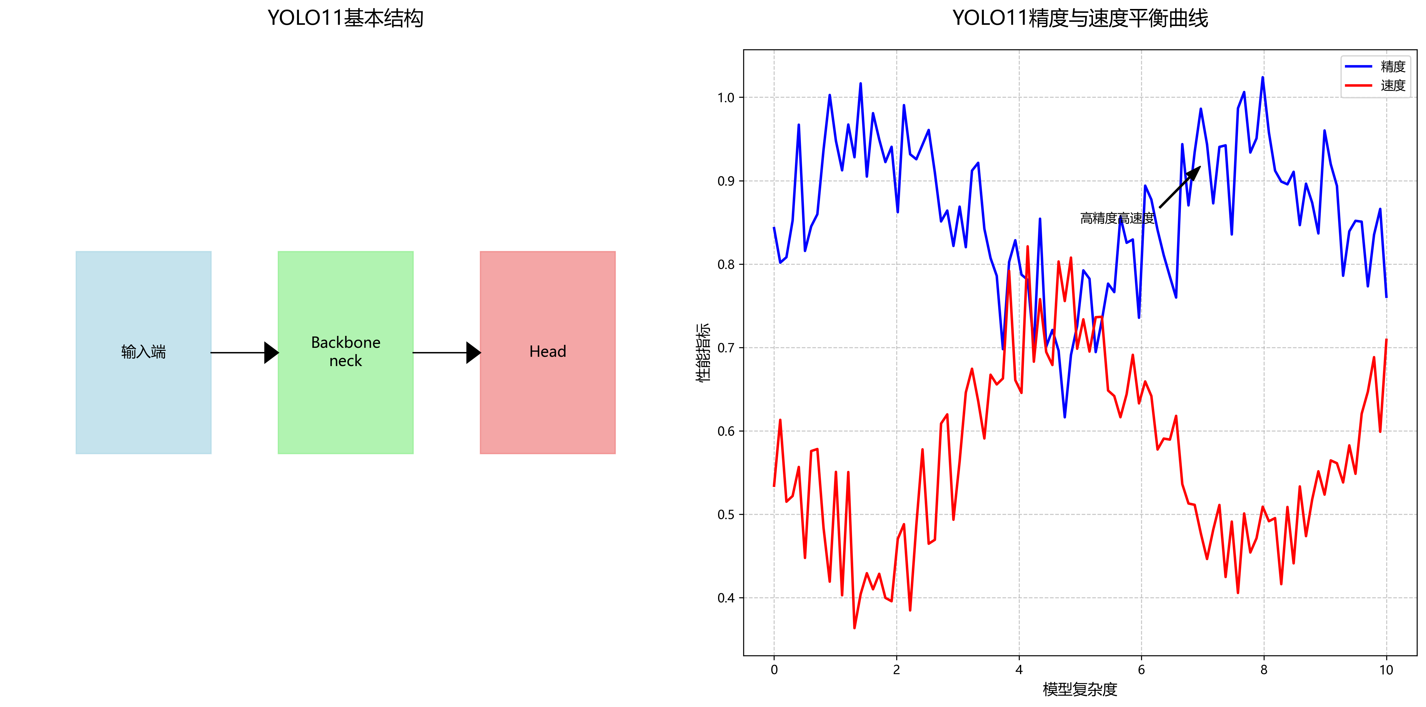 YOLO11是一种单阶段目标检测算法,具有速度快、精度高的特点。其网络结构主要由Backbone、Neck和Head三部分组成,通过特征金字塔网络(FPN)和路径聚合网络(PAN)实现多尺度特征的融合。