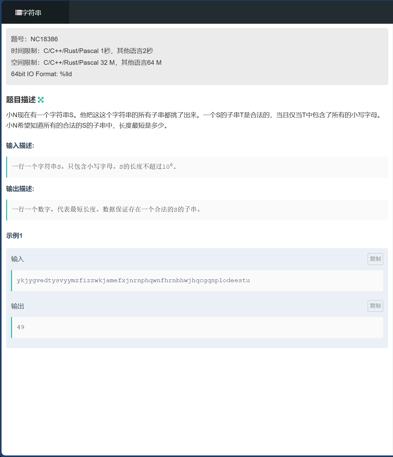 那么我们先让right往后走,每找到一个数字,就往哈希表里存储。当哈希表里面的大小正好为m时,说明[left,right]区间合法。由于我们要"瘦身"区间,即尽量减小[left,right]的长度且合法,那么我们再让left往后走,每找到一个元素,就让哈希表里统计的个数--。直到left所指的这个元素个数正好等于1,就不能走了,因为走了就要违法了。