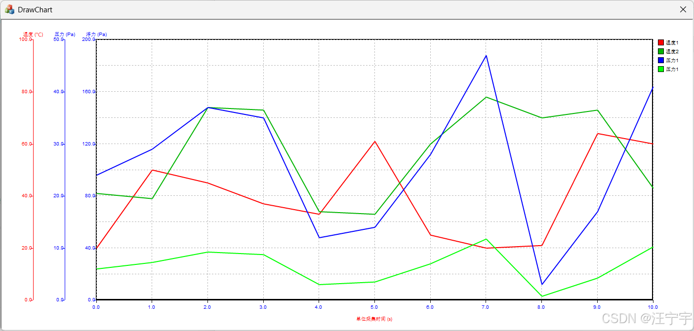 支持多 Y 轴、多数据序列绘制折线图,含刻度、网格、图例和自适应绘图区。