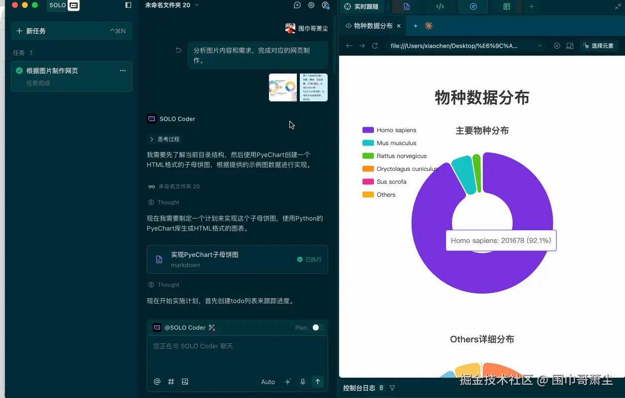 🚀TRAE SOLO 实战赛 | 智启Coding 码力全开 | 在TRAE SOLO中使用PyeChart创建一个HTML格式的子母饼图网站🧣