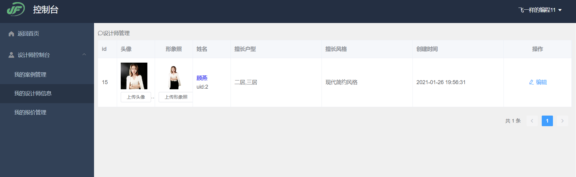 - 个人信息管理:维护自己的个人资料、设计风格、从业经验等信息。