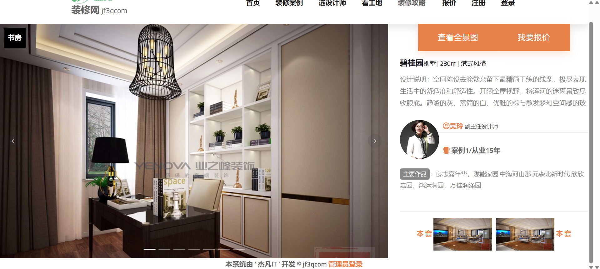 本系统是一个装修报价网站,旨在为有装修需求的用户提供一个集浏览装修案例、寻找设计师、获取装修报价于一体的综合性服务平台。用户可以通过平台查看不同风格和户型的装修案例,了解设计师的详细信息和过往作品,并提交自己的装修需求以获取报价。平台也为设计师提供了一个展示自己作品和接触潜在客户的渠道。管理员则负责对整个平台的内容和用户进行管理和维护。