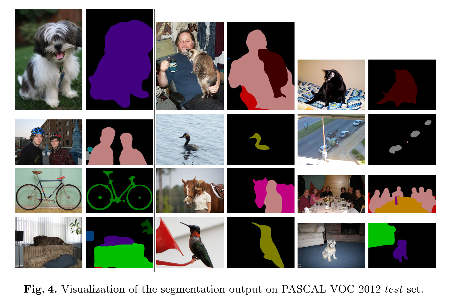 可以简单地将 SUNet 扩展用于分割任务,方法是移除全局平均池化层(以提高输出分辨率)并以全卷积模式运行网络 。与其他关于语义分割的研究工作[14,1,15]类似,输出特征图在传递到具有多类交叉熵损失的 softmax 层之前,会使用双线性插值调整为输入图像的大小。