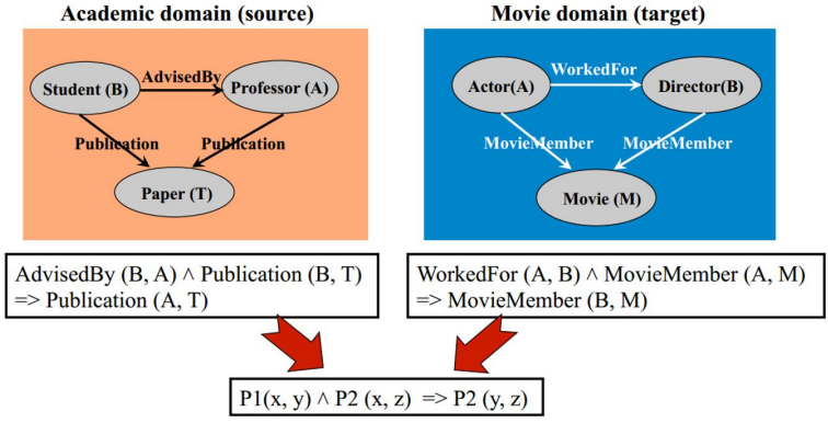 就目前来说,基于关系的迁移学习方法的相关研究工作非常少,仅有几篇连贯式的文章讨论:[Mihalkova et al., 2007, Mihalkova and Mooney, 2008, Davis and Domingos, 2009]。这些文章都借助于马尔科夫逻辑网络 (Markov Logic Net) 来挖掘不同领域之间的关系相似性。