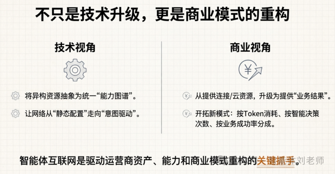 因此,智能体互联网并不是一个"可有可无的附加模块",而是驱动运营商资产重构、能力重构和商业模式重构的关键抓手。