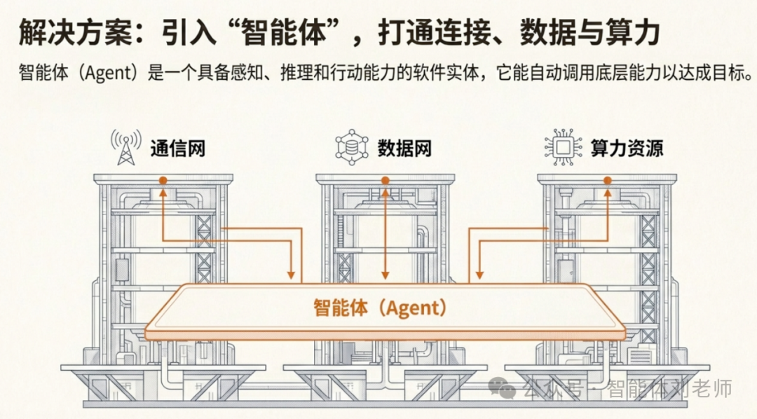 智能体是把异构资源(不同制式的通信网、不同厂家的路由交换设备、不同架构的算力集群)抽象成统一"能力图谱"的核心;