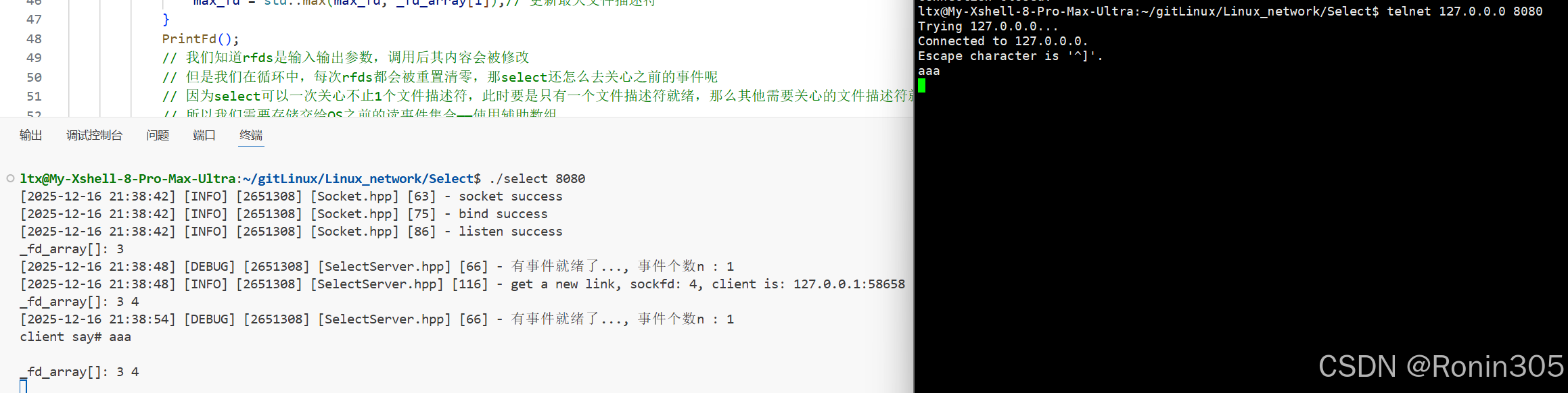 我们知道rfds是输入输出参数,调用后其内容会被修改,但是我们在循环中,每次rfds都会被重置清零,那select还怎么去关心之前的事件呢?
