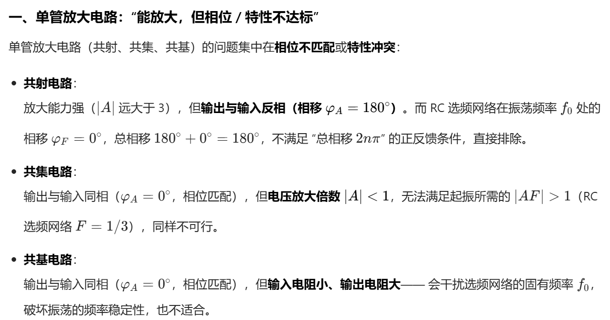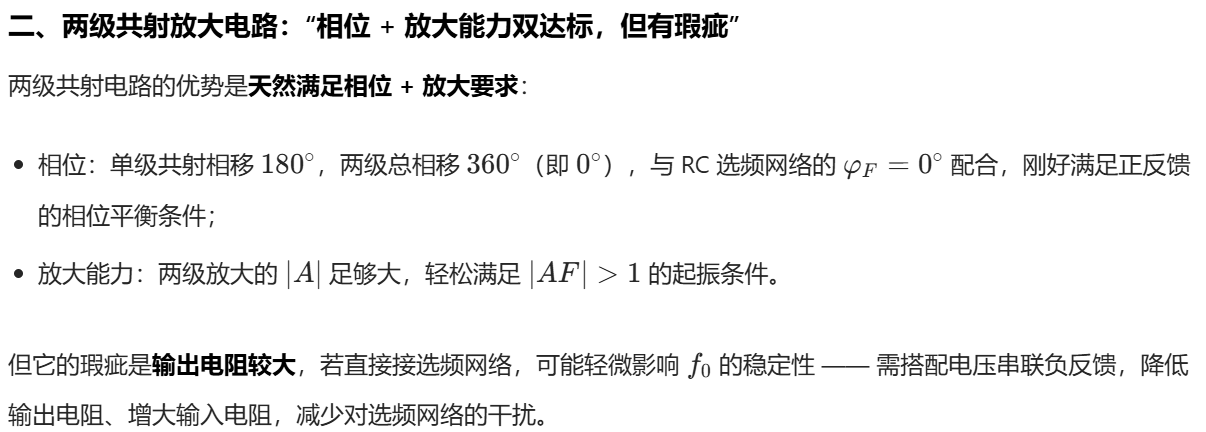要让放大电路能支撑振荡器工作,核心要同时满足相位匹配(正反馈)和放大能力达标(起振 + 稳幅)。