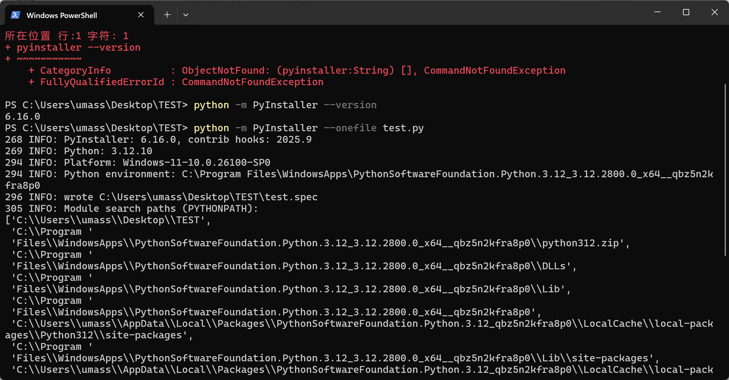 因此直接运行pyinstaller会报错,可以通过Python解释器直接调用PyInstaller模块