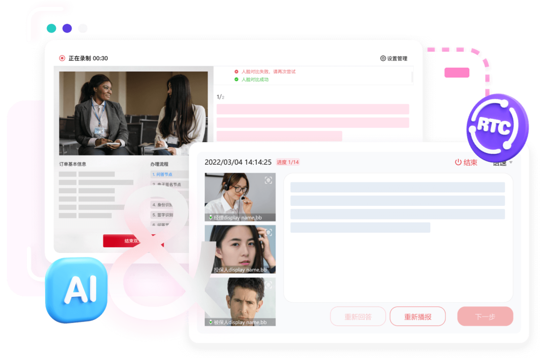 传统"录完再审"的模式已成过去。菊风智能双录的AI质检引擎,如同一位不知疲倦的"虚拟合规官",在录制过程中进行毫秒级实时分析。它能即时判断客户是否清楚或同意办理的业务、检查必要文件客户是否阅读,并对任何偏离合规脚本的行为(如人脸不符、多人入镜)发出预警,加强风险预警提示。