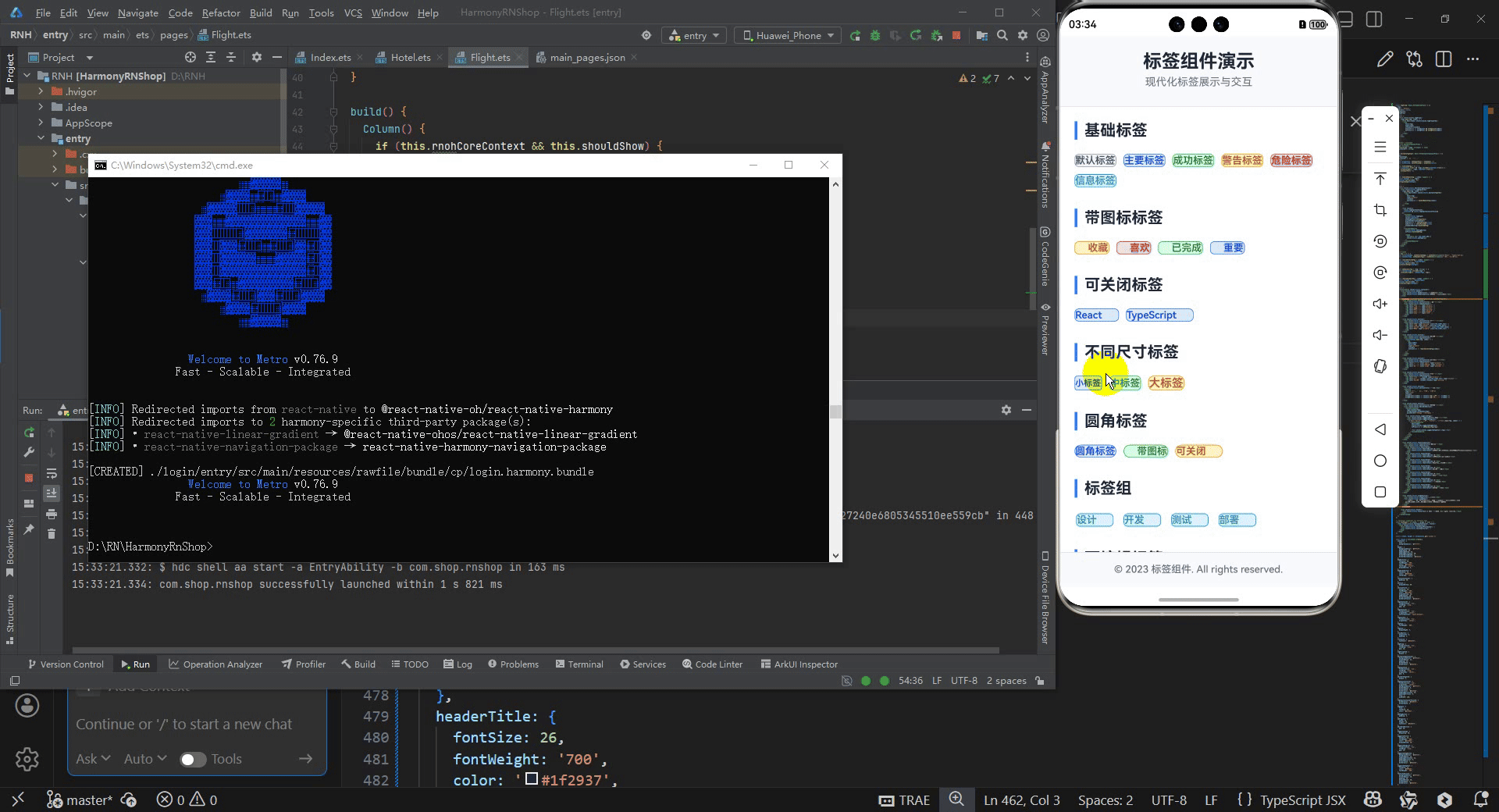 接下来通过打包命令npn run harmony将reactNative的代码打包成为bundle,这样可以进行在开源鸿蒙OpenHarmony中进行使用。