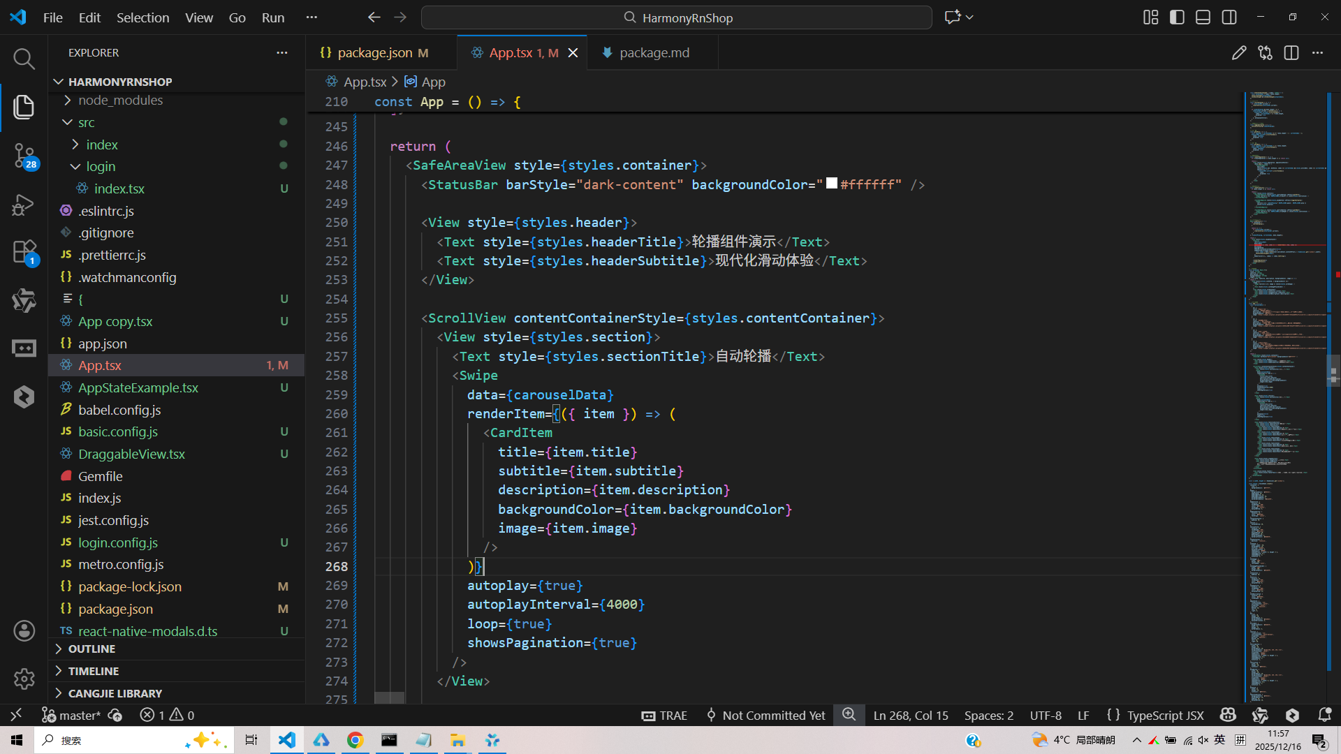 布局系统的差异也十分显著。React Native使用Flexbox布局配合绝对定位来实现分页器和控制按钮的位置控制,需要开发者手动计算各种元素的尺寸和位置关系。鸿蒙的Swiper组件内置了智能的布局管理机制,能够自动处理指示器和控制元素的定位,减少布局冲突的可能性。