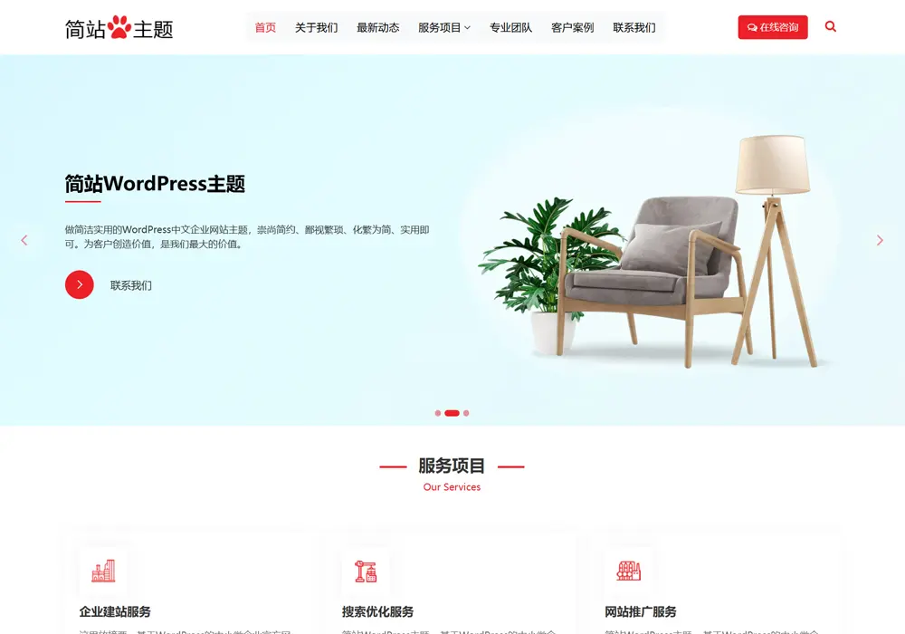 中国红WordPress模板,适合服务行业企业建站的通用多用途wordpress模板。