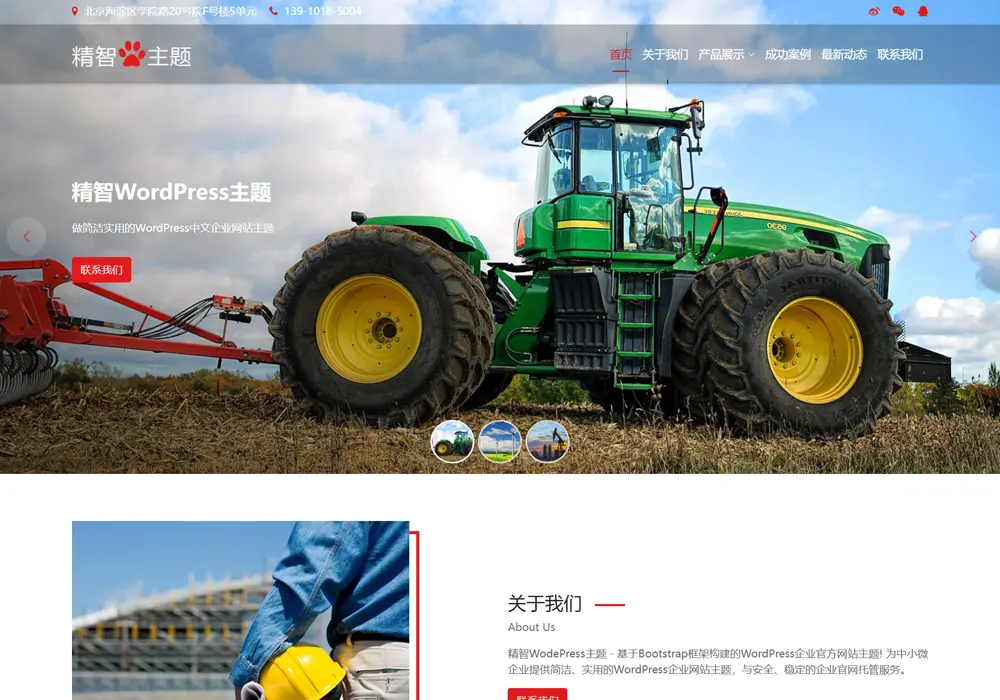 红色风格简洁大气的wordpress企业官网主题模板,适合制造业的工厂官方网站使用。