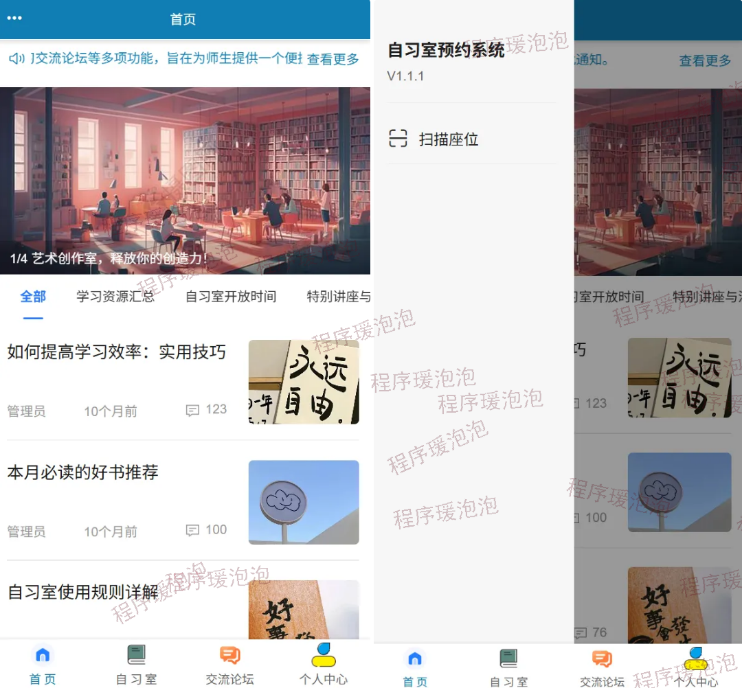 (2)查看系统通知:用户登录小程序后,可以在首页查看自习室预约管理系统发布的系统通知信息。